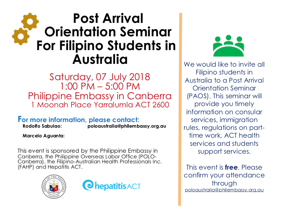 Post Arrival Orientation Seminar for Filipino Students in Australia - 2018 PAOS