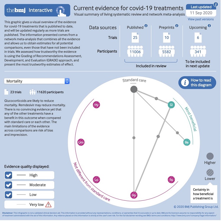 Drug treatments for Covid-19: living systematic review and network meta analysis. BMJ 30 July 2020.; 370:m2980.