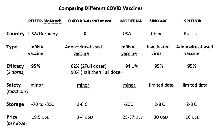 Among more than 100 candidate vaccines being developed and tracked by WHO the leading Covid vaccines are 1.Pfizer with German partner BioNtech 2.Moderna 3.Oxford-Astra Zeneca 4.Sputnik and 5.Sinovac vaccines which all claimed good efficacy in preventing acute Covid-19 symptoms based on media outlets. Currently it is only Oxford-Astra Zeneca AZD1222 and Pfizer BNT162b2 mRNA vaccines had undergone peer-review in leading scientific journals. The result published from Lancet journal of phase 3 clinical trials from Oxford-Astra Zeneca reported that this viral vector vaccine from modified adenovirus is safe with an overall efficacy of 70%. And this may induced strong antibody and T-cell response up to 56 days. Enrolled population who received the “first low dose” followed by “full dose” raised its efficacy to 90%.